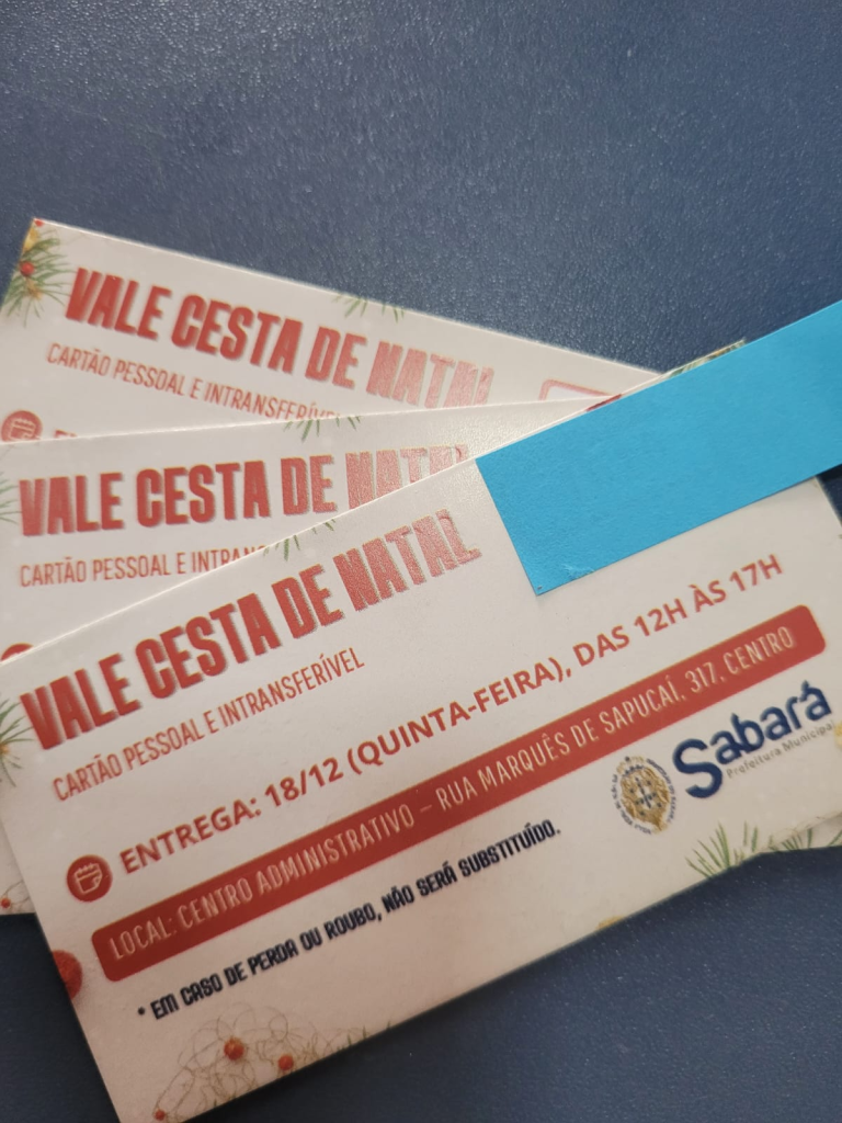 Os aposentados e pensionistas do SabaraPrev já podem retirar o cartão da Cesta Natalina 2025, na Sede do SabaraPrev, na Rua Dom Pedro II, 146. O cartão pode ser retirado de hoje, 02/12, até o dia 17/12, de segunda à sexta, de 8h às 16h.